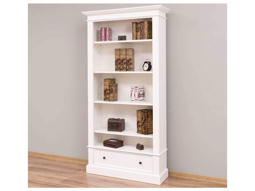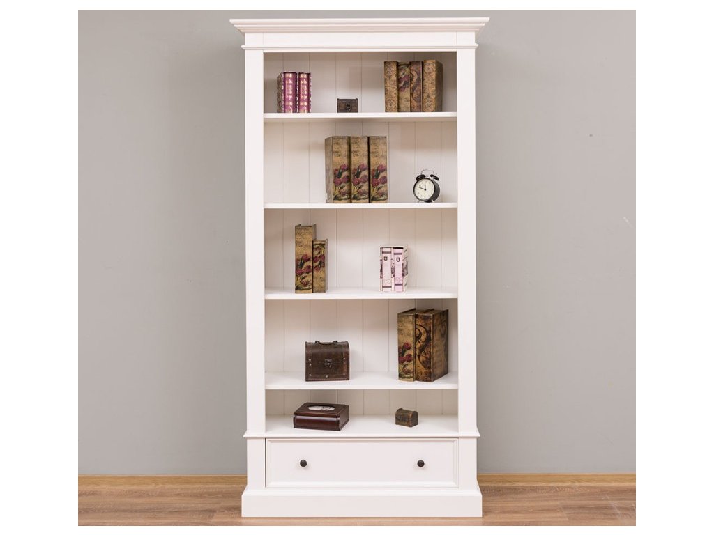 dřevěná otevřená knihovna se zásuvkoumateriál kombinace borovice, MDF 20%barvy dle výběru Maison Silent kolekceRozměry: Délka: 100 cm / Hloubka: 32 cm / Výška: 195 cm