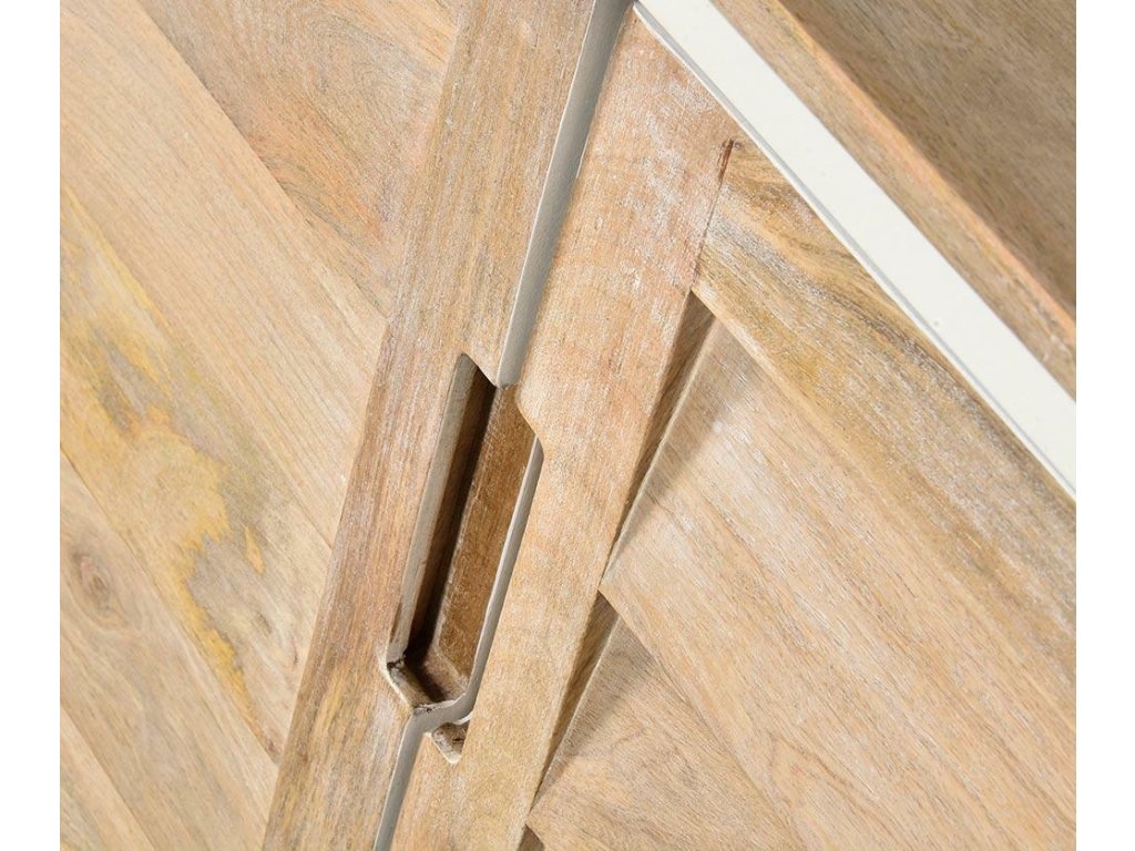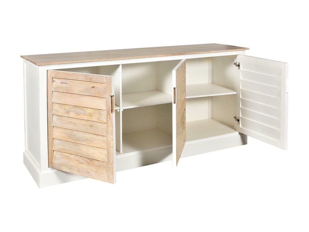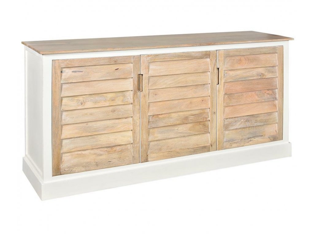 Dřevěná stylová komoda s lamelovými dvířkyve středomořském styluBílá patina, lamelová dvířkazvýrazněná struktura mangového dřeva v kombinaci s bíloukombinace dřeva mangového a MDFRozměr : 182 x 50 x 91 cm