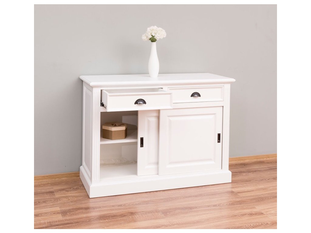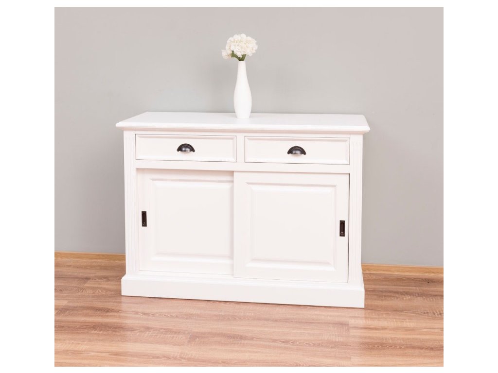 dřevěná komoda se 2-mi plnými posuvnými dvířkya 2-ma zásuvkami s pojezdymateriál borovice a MDF 20% barvy dle výběruRozměry: 124 x 49 x 88 cm