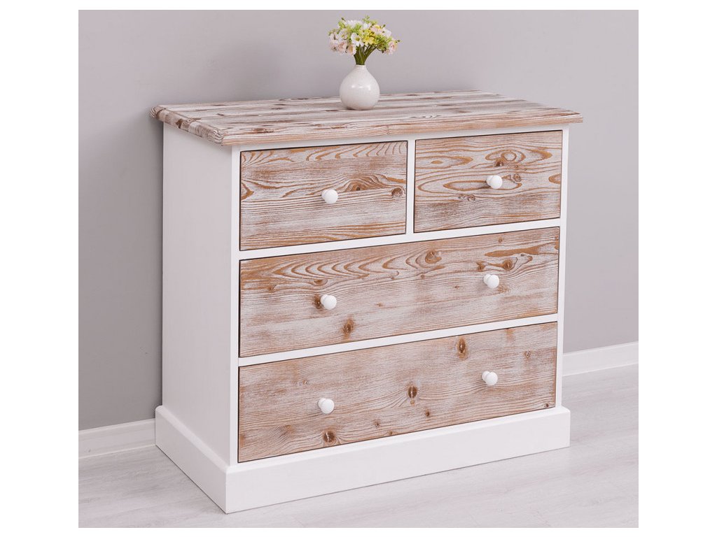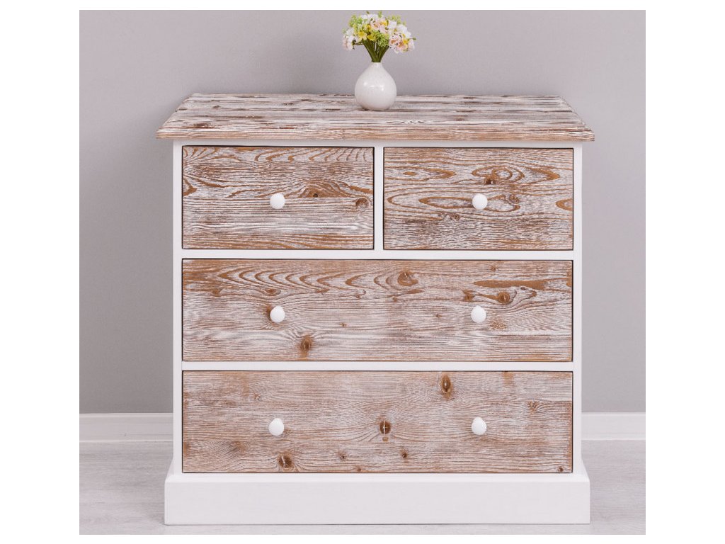 dřevěná komoda se 4-mi zásuvkamimateriál borovice, barvy a úpravy dle vyobrazeníRozměry: 100 x 50 x 90 cm