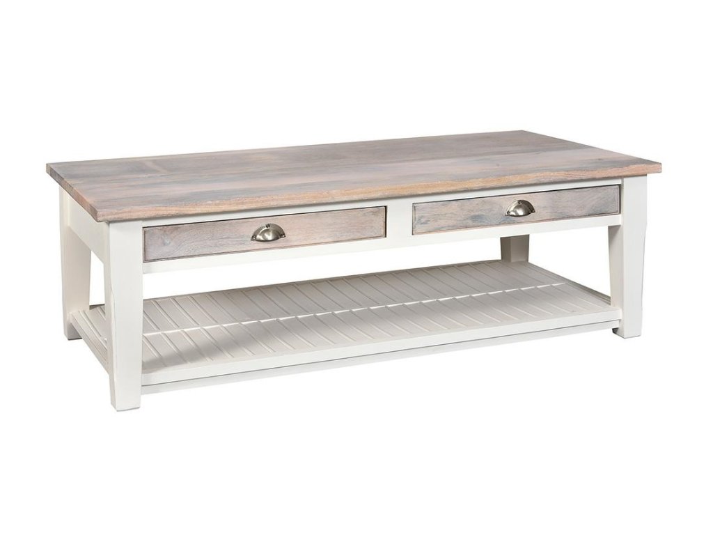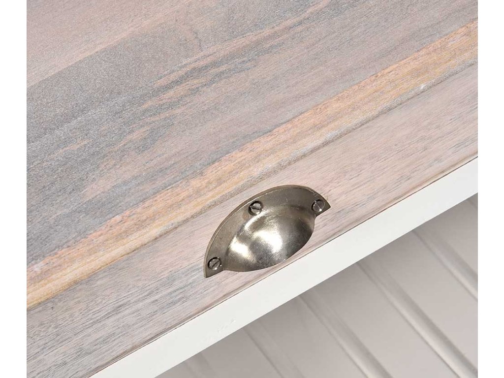 Dřevěný stylový stolekve středomořském styluBílosmetanová barva, lamelová dvířkazvýrazněná strukura mangového dřeva uvnitřkombinace dřeva a MDFRozměr :140x70x45 cm