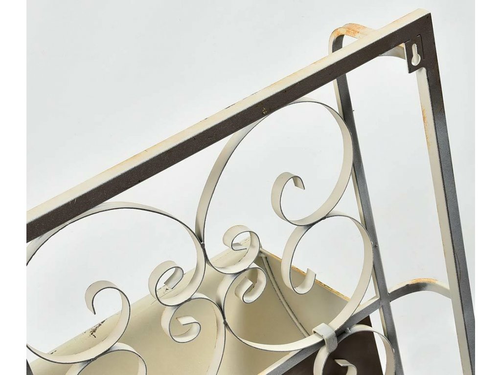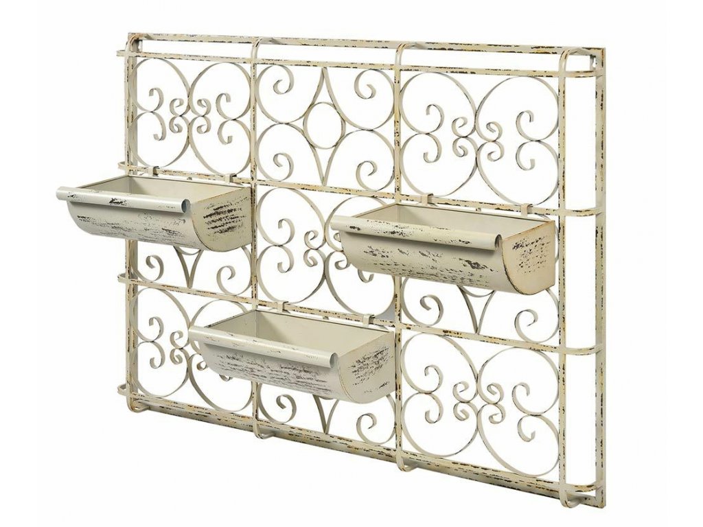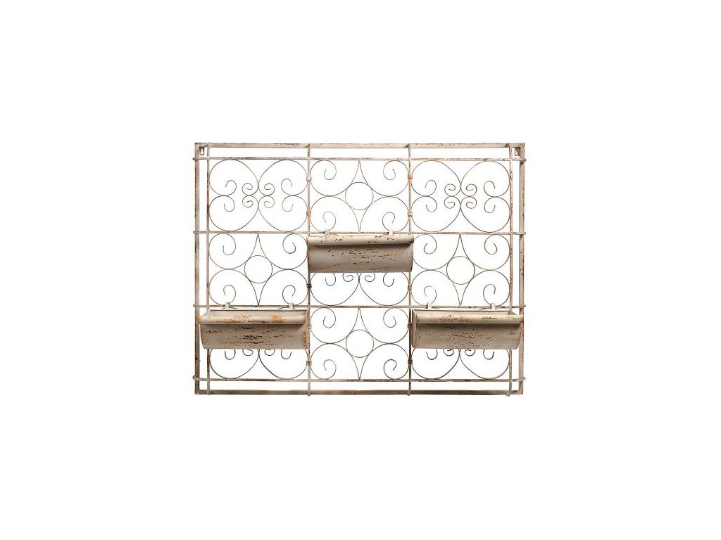 Antik ozdobná mříž na zavěšení na zeďse 3-mi květináčiMateriál: kovBarva: krémová patinaRozměr: 99 x 27 x 76 cm