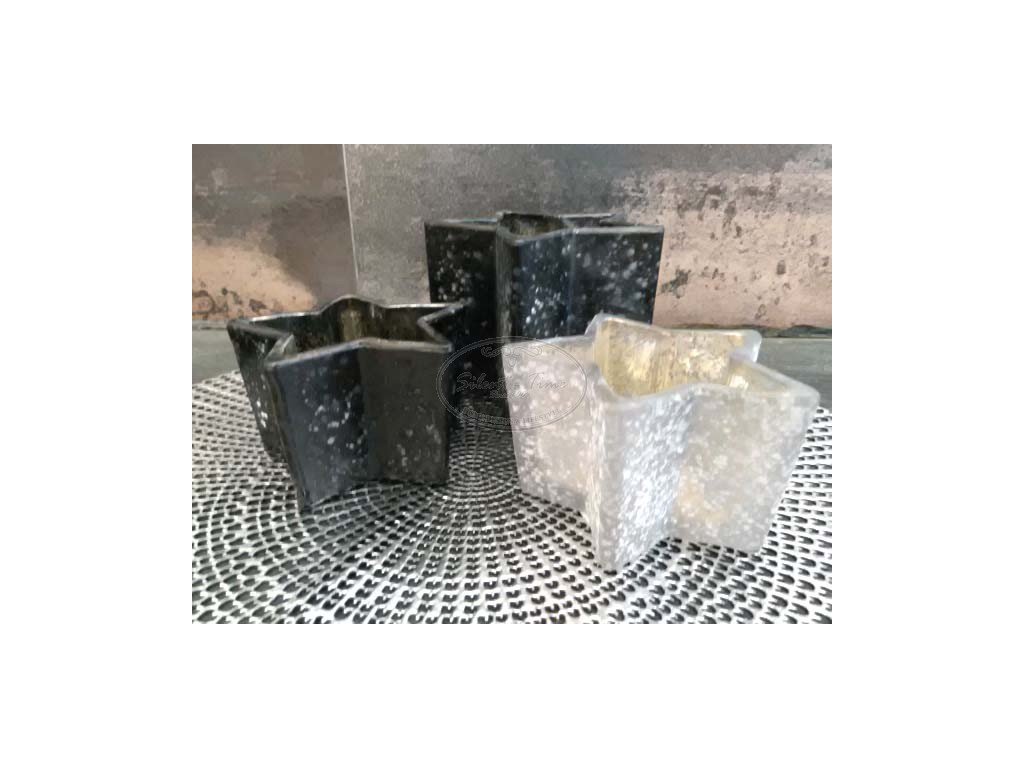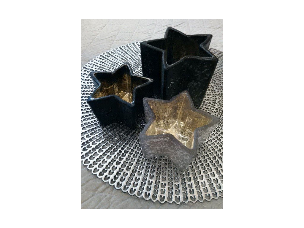 Svícny ve tvaru hvězdy, tmavě šedé, uvnitř zlaté;menší 6 x 10 x 10 cmvětší 10 x 12 x 12 cm