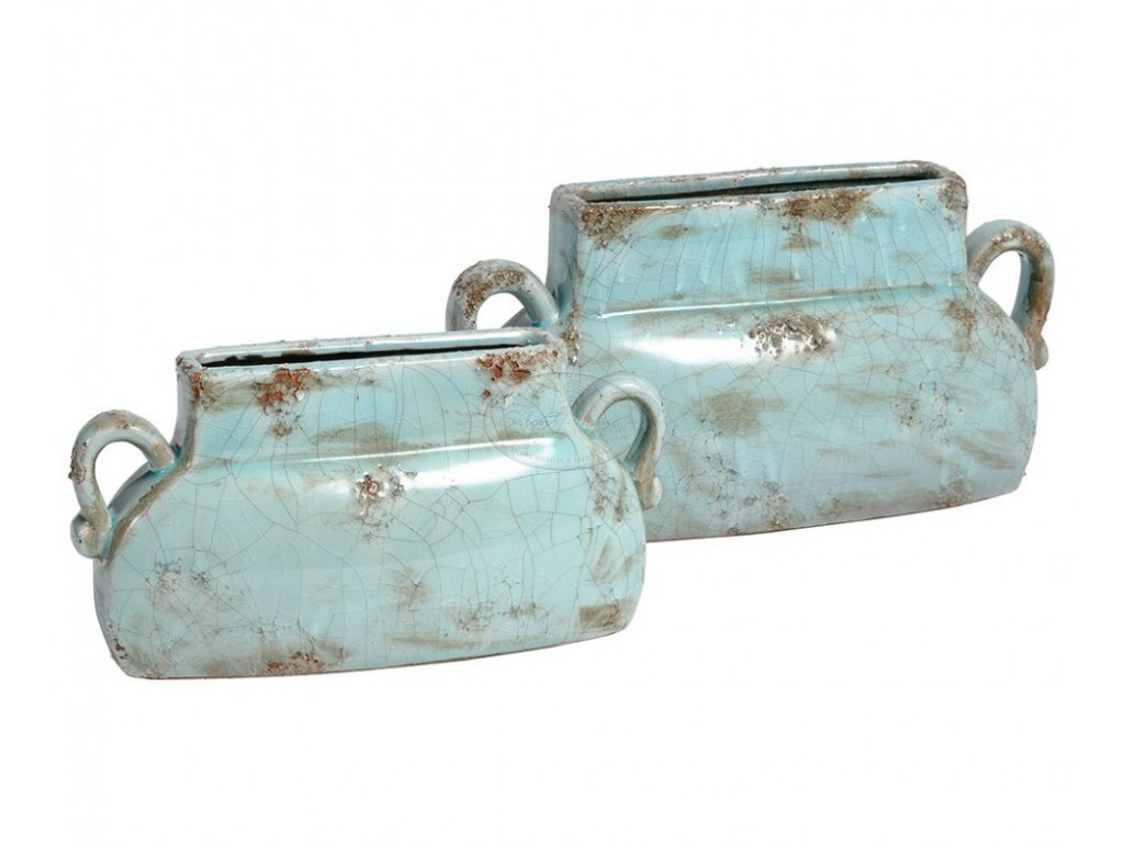 modrý kameninový květník-vázas glazurou vizáž popraskanáVel. 26,5x8,5x13,5 cm 31 x 11 x 16,5 cm